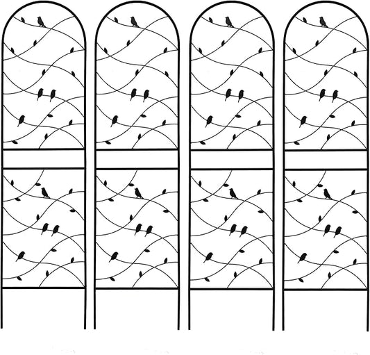 Metal Garden Trellis Rustproof Trellis for Climbing Plants Outdoor Flower Support Bird Deco (Black-4 Pack, 71"x19.7")