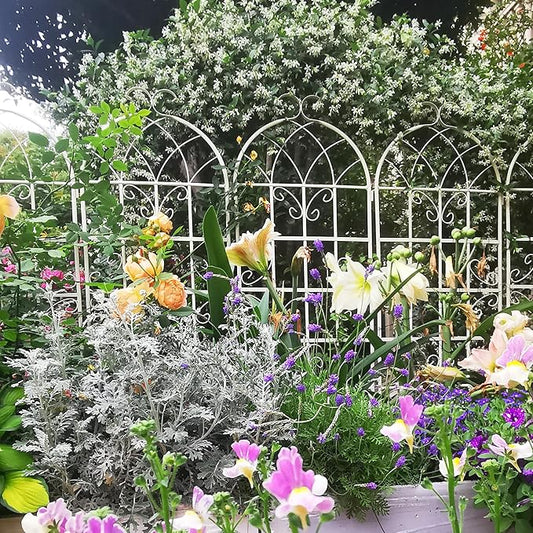 Metal Garden Trellis Rustproof Trellis for Climbing Plants Outdoor Flower Support Butterfly Deco (Cream White-4 Pack, 71"x19.7")