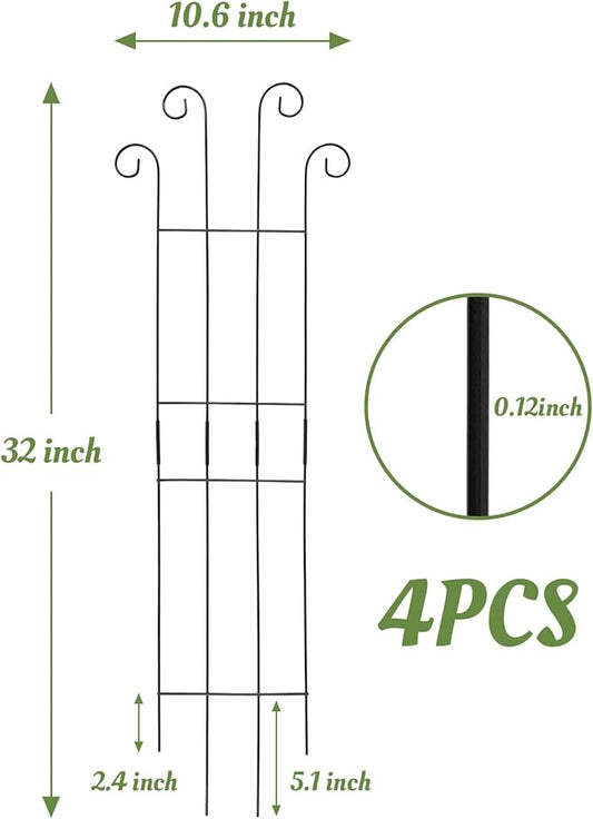 4 Pack 32'' Wave Shape Black Metal Trellis for Climbing Plants Indoor & Outdoor, Garden Trellis for Houseplants Flowers Vine Ivy