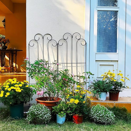 2 Pack Garden Trellis for Climbing Plants Outdoor, Metal Arched Fence Trellis Plant Climbing Support Decorative, Plant Trellis Indoor for Vines Flowers Vegetables Wall Brackets, 60" x 11"
