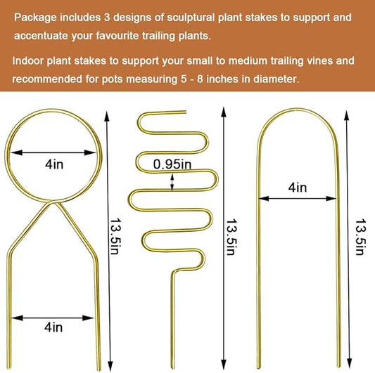 Small Metal Trellis for Potted Plants, 3 Pcs Gold Trellis for Climbing Plants Indoor, Plant Support Stake Mini House Plant Trellis for Hoya, Flower, Pothos, Monstera