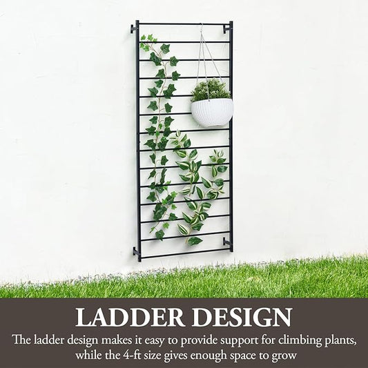 MyGift 4 Ft Tall Trellis, Black Metal Wall Mounted Garden Trellis for Climbing Plants Outdoor/Indoor, Large Wall Support Frame for Hanging Planters (2, Black)