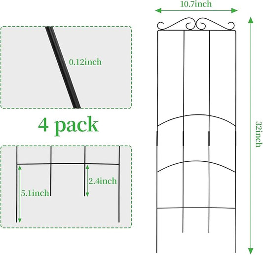 4 Pack 32'' Trellis for Potted Plants, Metal Garden Trellis for Climbing Plants Outdoor, Indoor Plant Trellis Black Coated Flower Pot Trellis for Climbing Plants Houseplants Vine Ivy