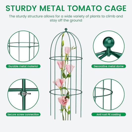 Trellis for Climbing Plants Outdoor 1Pcs Garden Obelisk, Metal Pipe Tomato Cage Cucumber Rose Flower Vegetable Grape Round Vine Tall Plants Trellis,Plants Support Stakes Potted Garden Tower Indoor
