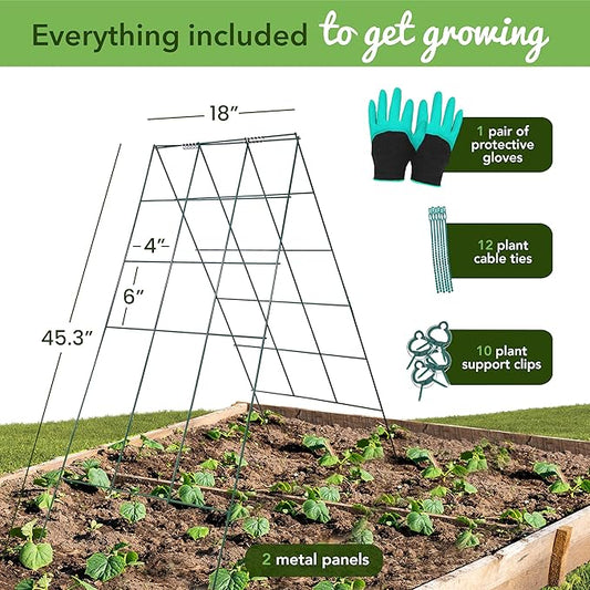 Cucumber Trellis - A Frame Trellis for Raised Bed Climbing Plants, Vegetables. Includes Plant Support Clips, Gardening Gloves, Cable Ties - Made from Galvanized Steel - Weather-Resistant