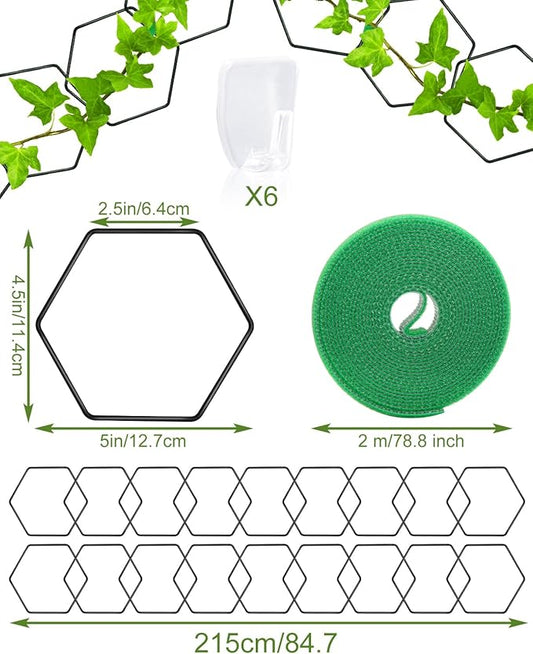 18 Pcs Garden Chain Trellis for Indoor Climbing Plants, Unique 6-Corner Plant Accessory with Hooks and Ties, Wall Trellis Plant Support for Hoyas, Ivy, Monstera Outdoor (Black)