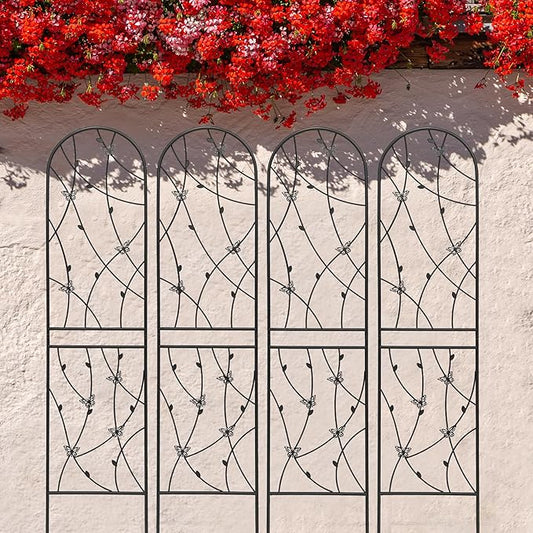 4 Pack Metal Garden Trellis 86.7" Tall Outdoor Climbing Plant Support for Roses, Flowers, Rustproof Durable Black Galvanized Tube, Lawn Garden Fence Decor Screen (4, Black flutter-86.7" H)