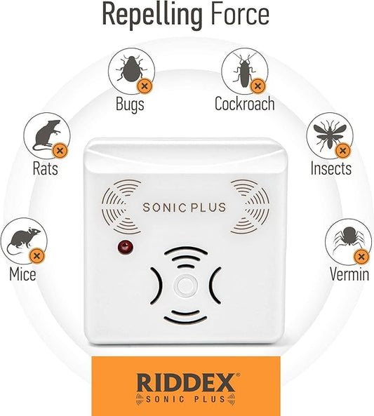 Riddex Sonic Plus Ultrasonic Pest Repeller, Plugs in with extra Outlets Indoor Use - Insect Repellent - Bug Repellents for Home Defense - Protect Against Rodents & Insects, Chemical Free(3 Pack White)
