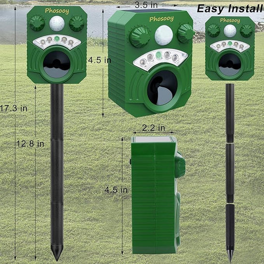 4Pack Solar Ultrasonic Animal Repeller with Strobe Light – for Gardens, Farms and courtyards Outdoor Deterrent for Raccoons, Deer, Squirrels, Cats, Skunks & Foxes