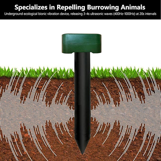 Snake & Mole & Rabbit & Skunk Repellent Solar Powered, Ultrasonic Deterrent, IP65 Waterproof, 2025 Upgraded Gopher Groundhog Rodent Chipmunk Raccoon and Vole Repellent for Lawn & Garden, 10 Pack