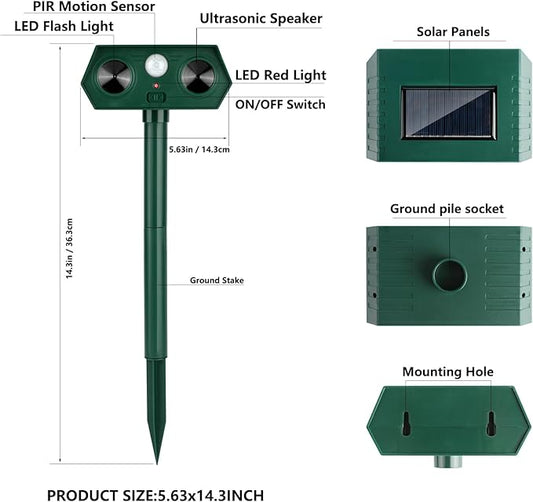 Ultrasonic Animal Repellent Outdoor Solar Powered Repeller Cat Dog Deer Deterrent Waterproof Motion Sensor Deterrent for Yard Garden Rabbit Squirrels Fox Pest(Green,2 Pieces)