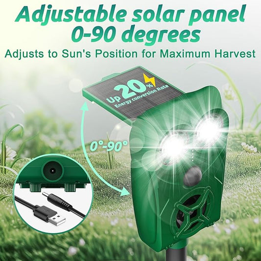 Solar-Powered Ultrasonic Animal Repellent with Motion Sensor, Waterproof Deer Repellent Device with Visual Indicator for Yard, Garden, and Plants, Effective to Repel Deer, Coyotes, Raccoons, and Cats
