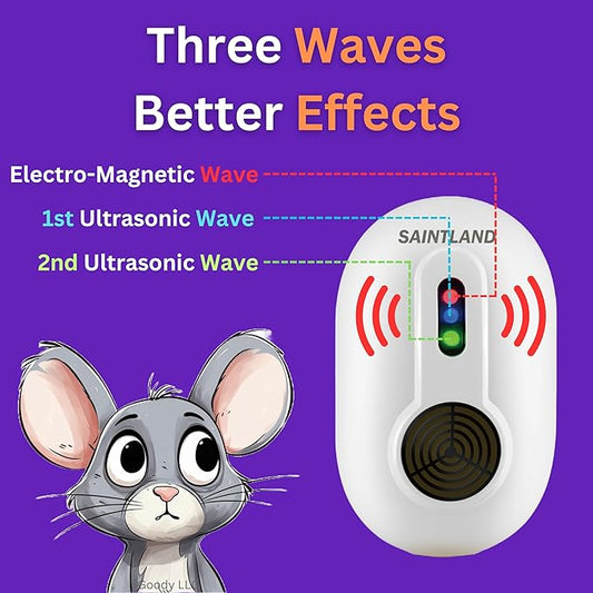 3-Wave Ultrasonic Mouse Repeller, E-Magnetic & Ultrasonic Wave, Indoor Plug-in Repellent, Repel Mouse, Rat, Squirrel SD-042