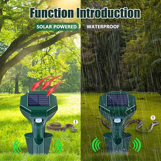 Ultrasonic Deer Repellent Outdoor, Solar-Powered Waterproof Animal Repellent Device for Yard, Garden, and PlantsEffective Repel Cat, Dog, Squirrel, Deer, Raccoon, Rabbit, and Skunk (4)