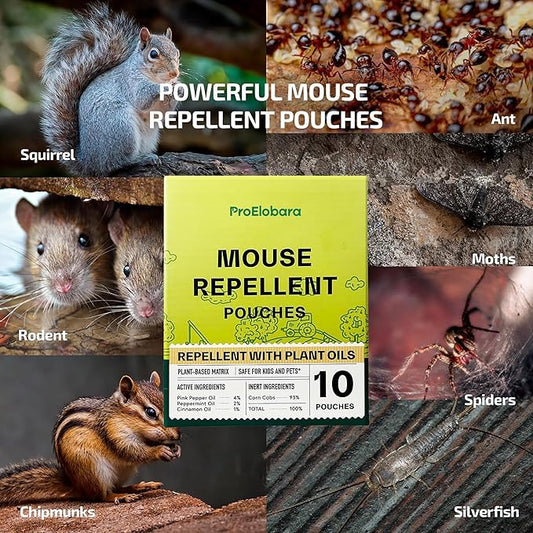 Mouse Repellent Pouches with Peppermint Oil: Natural Rodent Repellent Indoor to Get Rid of Rats, Mice, Squirrels - Safe for Pets and Kids, Rat Repellents for House, Car, Outdoor
