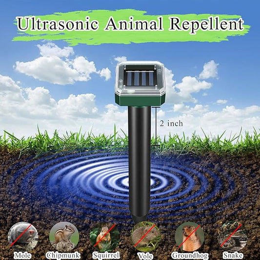 Mole Repellent Solar Powered 10 Pack Snake Repellent for Yard Outdoor, Waterproof Sonic Spikes Stakes for Lawns, Get Rid of Groundhog Chipmunk Chaser Vole Repellent, Effective for Lawns, Garden, Farm