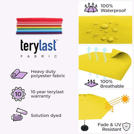 Midtown Umbrellas The Swilt 9 Feet Patio Umbrella in Terylast Sunflower (Yellow) Polyester Fabric - Fiberglass Ribs, Auto-Tilt Aluminum Frame For Backyard, Deck, Garden, Pool - White Pole