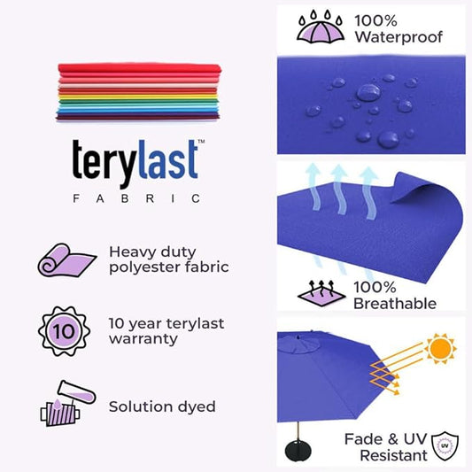 Midtown Umbrellas The Swilt 10 Feet Patio Umbrella in Terylast Midnight (Royal Blue) Polyester Fabric - Fiberglass Ribs, Auto-Tilt Aluminum Frame For Backyard, Deck, Garden, Pool - White Pole