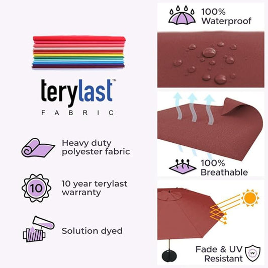 Midtown Umbrellas The Swilt 10 Feet Patio Umbrella in Terylast Apple (Red) Polyester Fabric - Fiberglass Ribs, Auto-Tilt Aluminum Frame For Backyard, Deck, Garden, Pool - White Pole
