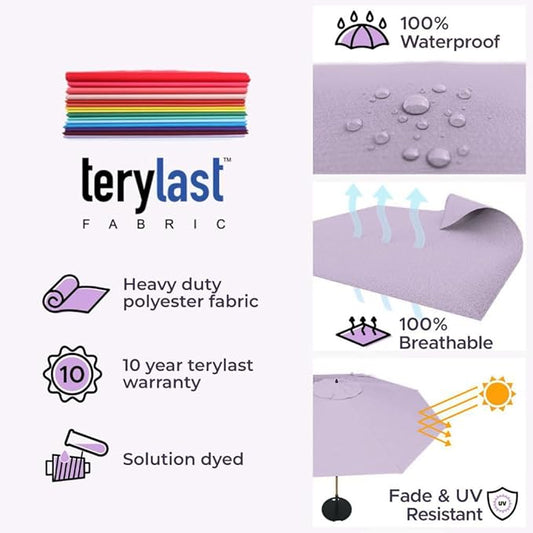 Midtown Umbrellas The Swilt 10 Feet Patio Umbrella in Terylast Midtown Purple Polyester Fabric - Fiberglass Ribs, Auto-Tilt Aluminum Frame For Backyard, Deck, Garden, Pool - White Pole