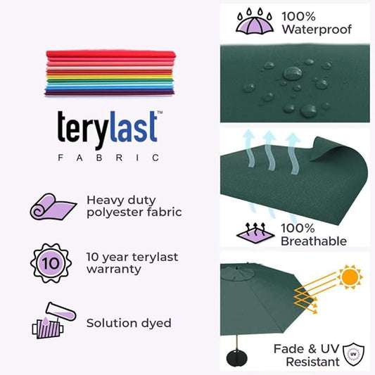 Midtown Umbrellas The Swilt 10 Feet Patio Umbrella in Terylast Forest (Dark Green) Polyester Fabric - Fiberglass Ribs, Auto-Tilt Aluminum Frame For Backyard, Deck, Garden, Pool - White Pole