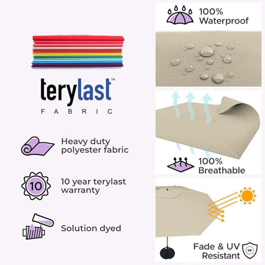 Midtown Umbrellas The Swilt 8 Feet Patio Umbrella in Terylast Chestnut (Beige) Polyester Fabric - Fiberglass Ribs, Auto-Tilt Aluminum Frame For Backyard, Deck, Garden, Pool - White Pole