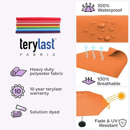 Midtown Umbrellas The Swilt 9 Feet Patio Umbrella in Terylast Tangerine (Bright Orange) Polyester Fabric - Fiberglass Ribs, Auto-Tilt Aluminum Frame For Backyard, Deck, Garden, Pool - White Pole