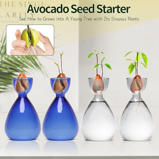 Avocado Vase Avocado Seed Starter Vases Trees Live Plants Growing kit Glass 2pc