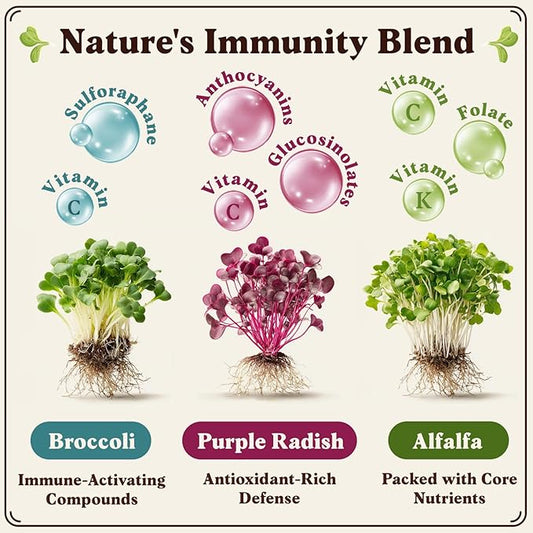 Seedboy Organic Sprouting Seeds - Immune System Booster Blend - Non-GMO, USA Grown - Broccoli, Purple Radish, Alfalfa - Makes 8 Quarts of Sprouts, 24 Servings (8 oz) (Immune System Booster Blend)