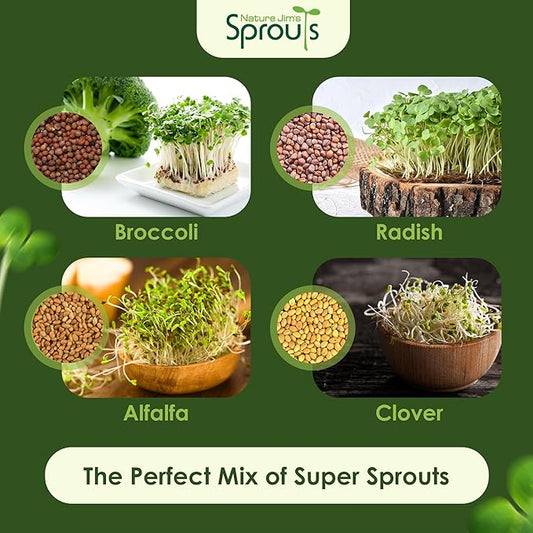 Nature Jims Sprouts Organic Salad Mix – Non-GMO Microgreen Seeds for Growing – Healthy Broccoli, Alfalfa, Radish & Clover Sprouting Variety Blend – Microgreens & Sprouts Seeds for Home Gardening – 1lb