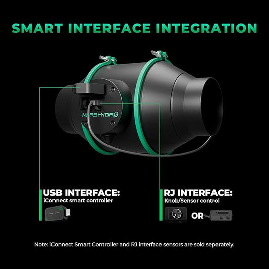 Mars Hdyro 2025 New Version iFresh 6 Inch Smart Inline Duct Fan with Variable Speed Controller, 402 CFM App Control Ventilation Exhaust Fan for Grow Tents, Hydroponics