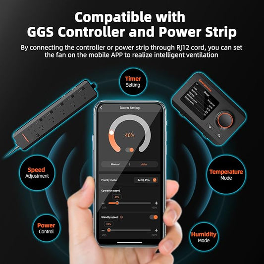 Spider Farmer 6 Inch Smart Inline Duct Fan with GGS Temperature Humidity Controller, WiFi Integrated App Control, 402 CFM Ventilation Exhaust Fan for Heating Cooling Booster, Grow Tents, Hydroponics