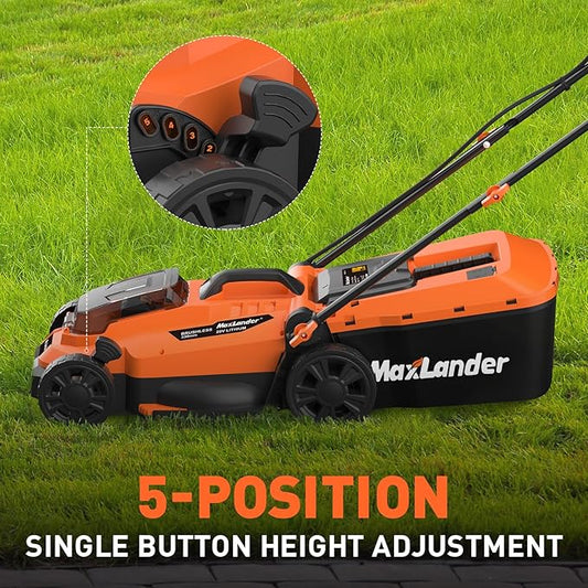 Maxlander Lawn Mowers, 13Inch Electric Lawn Mower Cordless, 20V 2-in-1 Battery Powered Lawn Mower with Brushless Motor, 5-Position Height Adjustment, Battery and Charger Included