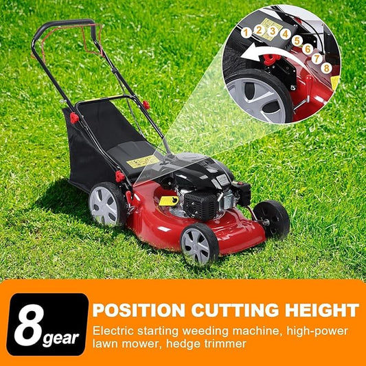 Gas Lawn Mower, 3 in 1 Gas Lawn Mower, 131cc 4-Cycle Push Mower Gas, Push Lawn Cutter with 50L Grass Tank, Position Cutting Height Adjustment, Low Noise & Fuel-Efficient for Lawn, Yard and Garden