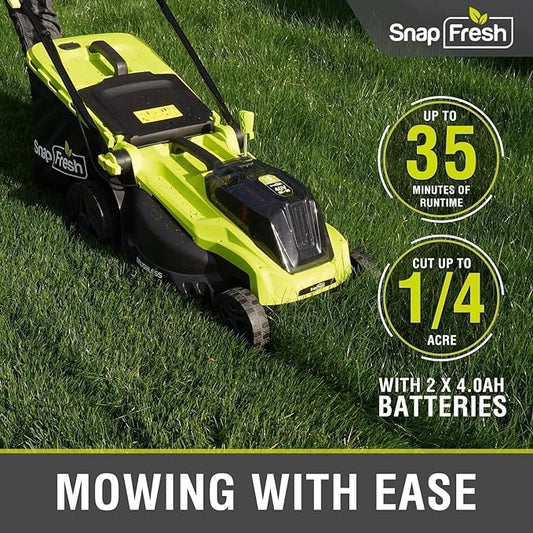 SnapFresh Electric Lawn Mower Cordless - 40V (2 x 20V) 16” Brushless Push Lawn Mowers with 4.0Ah Battery x 2 and Fast Charger Included - Battery Operated Lawn Mower with Bagger