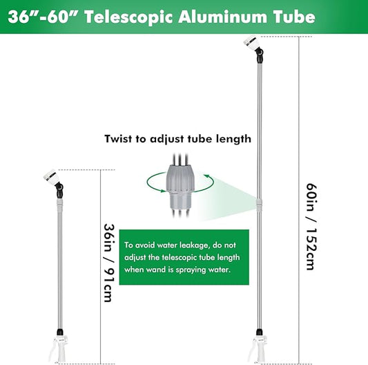 RESTMO 36”-60” Metal Watering Wand, Long Telescopic Tube | 180° Adjustable Ratcheting Head | 7 Spray Patterns | Flow Control, Garden Hose Sprayer to Water Hanging Baskets, Shrubs, White