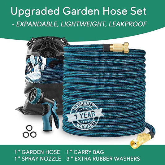Expandable Garden Hose 75 ft, 2025 New No Kink Flexible Water Hose 75ft with 10 Pattern Spray Nozzle, Extra Strong Brass Connectors, Reinforced Expanding Latex Core, Ultra Lightweight & Collapsible