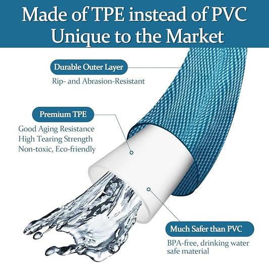 Garden Hose 50ft, Made of TPE(Not PVC), Ultra-Light & Flexible Water Hose with Solid Brass Fittings, Non-Shrinking, Easy to Storage, Drinking Water Safe Material, All-weather, SeaBlue
