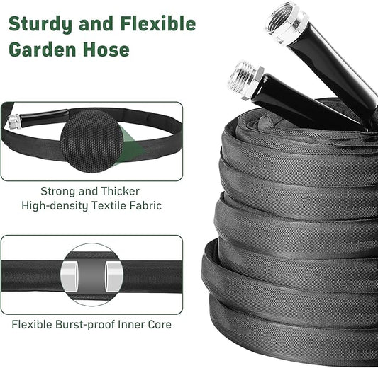 Garden Hose 25 FT, NON-EXPANDABLE Heavy-Duty Flexible & Lightweight Water Hose with 10-Function Nozzle, No-Kink Design, Leak-Proof Super Fabric, Solid Fittings for Lawn, Car, RV, Outdoor