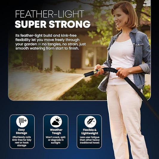 TITAN Flexible Garden Hose 50FT – Ultra Lightweight, Heavy Duty Water Hose with Brass Fittings & Jet Nozzle – Kink-Free, Non-Expanding, Durable Fabric Hose for Yard, Lawn, Car Wash, Outdoor Use