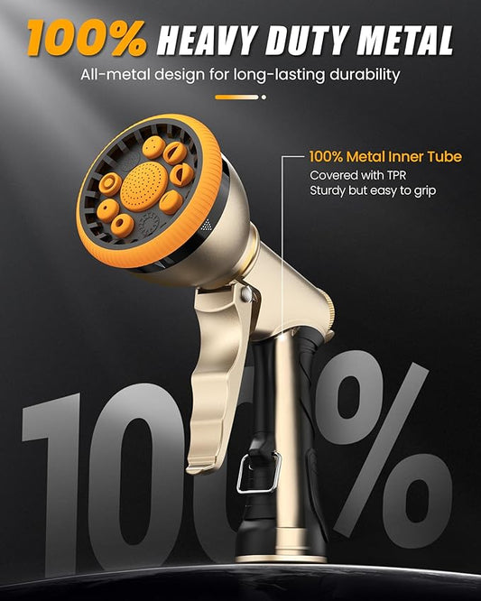 STYDDI Pro Ultra Heavy Duty Multi-Patterns Garden Hose Nozzle, All Metal Hose Nozzle with 8 Spray Patterns, Perfect for Plant Watering, Car Washing, Window Cleaning, Pet Showering, Green