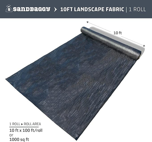 Sandbaggy 10 ft x 100 ft Landscape Fabric | 40 Year Fabric | for Weed Barrier, Ground Cover, Garden | Industrial Grade | 135 Lbs of Tensile | UV Protected | DOT Approved (1 Roll - 10 ft x 100 ft)