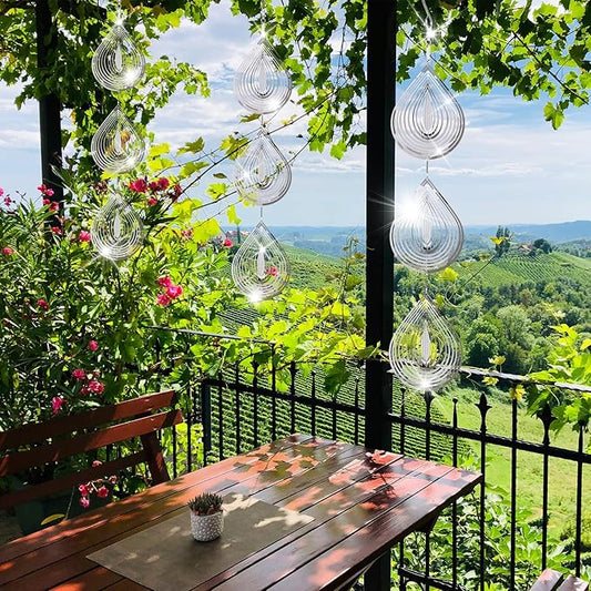 Droplet Bird Scare Discs Set, Metal Bird Reflectors Shiny Wind Spinners for Outdoor Garden Decor, Reflective Bird Devices Deterrents to Keep Scare Birds Away from Outside Patio Porch Yard Fruit Trees
