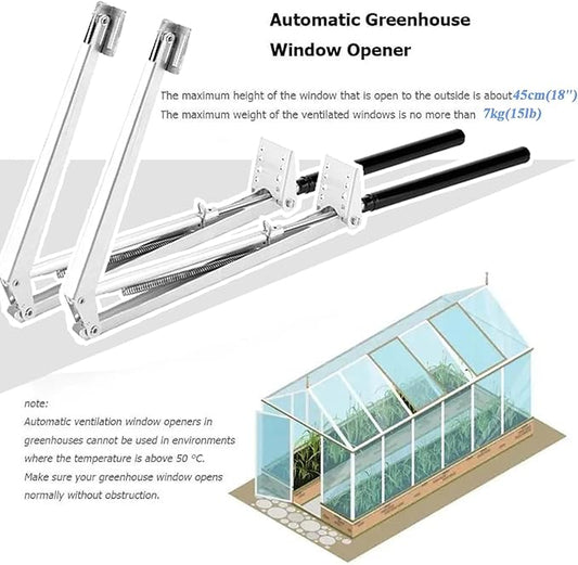 BIBISTORE Automatic Greenhouse Vent Opener Auto Solar Cold Frame Window Openers Agriculture Hothouse Roof Opening Kits Gardening Greenhouse Accessories-33 Lbs Lift Capacity,Two Springs