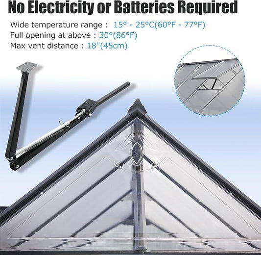 Automatic Greenhouse Ventilation Solar Thermal Roof Ventilation Automatic Window Opener, Greenhouse Roof Ventilation and Cold Frame Greenhouse Automatic Temperature Control Support Accessories(1Set)
