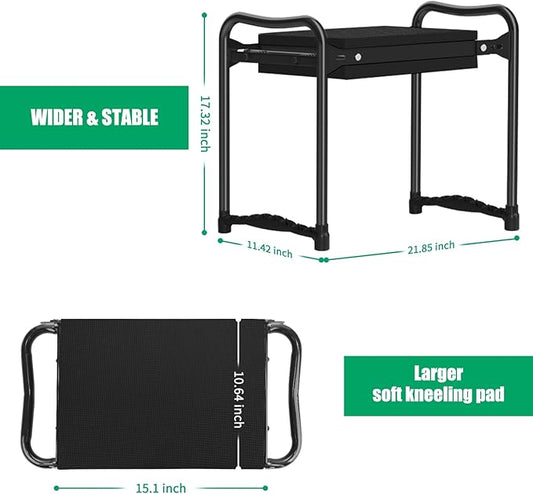 TomCare Garden Kneeler and Seat 10.64” Wider Larger Soft Kneeling Pad Garden Bench with 2 Large Tool Pouches Heavy Duty Garden Stool Foldable Tools Gardening Gifts for Women Men Gardeners,Black