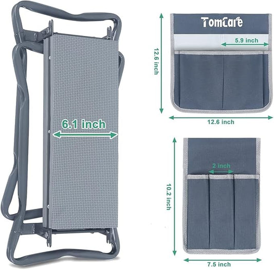 TomCare Garden Kneeler Seat Garden Bench Garden Stools Foldable Stool with Tool Bag Pouch EVA Foam Pad Outdoor Portable Kneeler Christmas Gardening Gifts for Women Men,Large 21.65"x10.62"x18.89",Grey