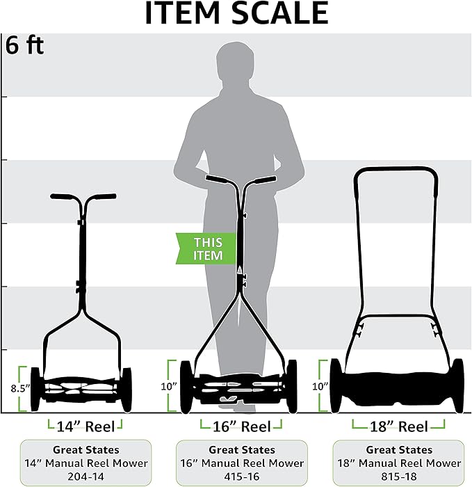Great States 415-16 16-Inch Reel Mower Standard Full Feature Lawn Mower with T-Style Handle and Heat Treated Blades