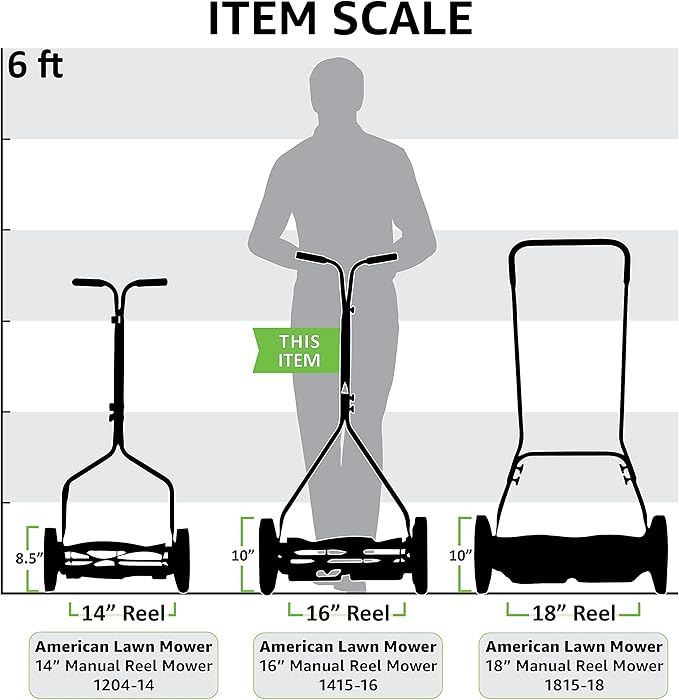 American Lawn Mower Company 1415-16 16-Inch 5-Blade Push Reel Lawn Mower, 5-Blade, Gray