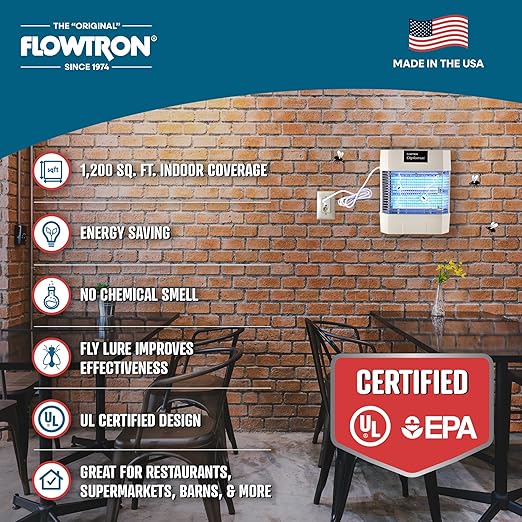 Flowtron Indoor Bug Zapper | Electric Fly & Insect Killer with 80W UV Light, Pheromone Lure Attractant, Shock Kill Grid & Reflector Panels | 1200 Sq Ft for Kitchen, Restaurant & Barn, UL Certified